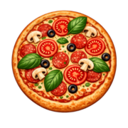 Tomaten, Mozzarella, frische Champignons, frische Peperoni, Artischocken, Zwiebeln, Spinat, Zucchini